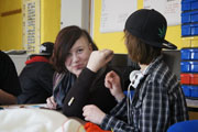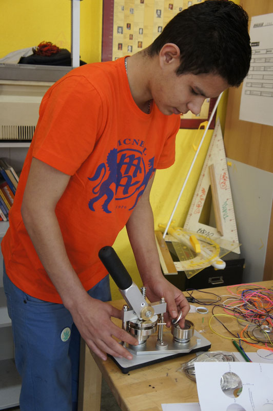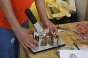 Ein Highlight dieses Kreativtages war die Arbeit mit der Buttonmaschine. Von Namen und kleinen Bildern, gemalt oder aus Stoff, bis zu Knöpfen konnten die Teilnehmer alles Mögliche auf Anstecknadeln pressen.