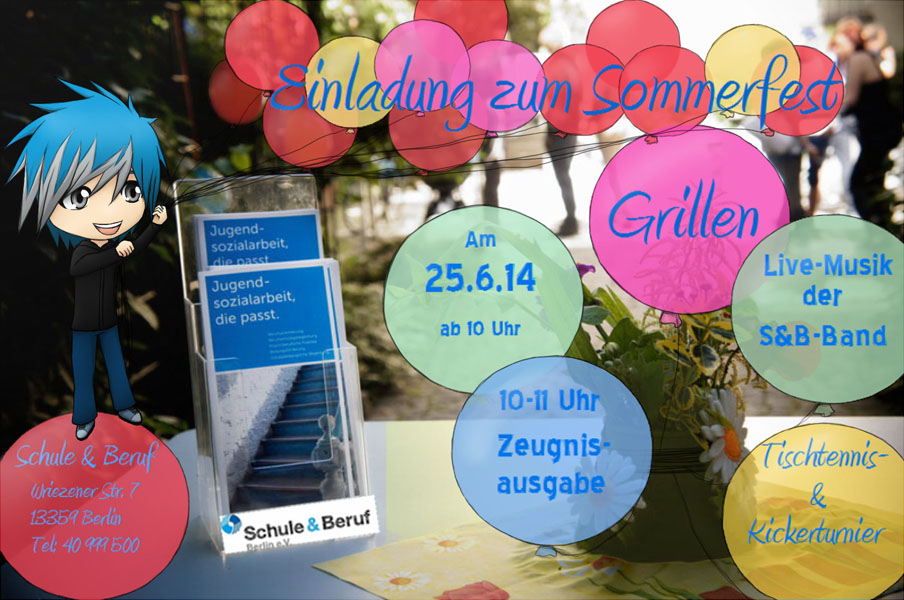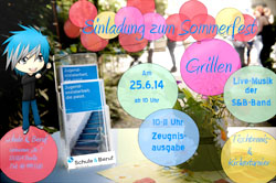 Schule & Beruf lädt zum Sommerfest 2014 mit unseren Jugendlichen, deren Eltern und Betreuern ein. Wir freuen uns auf einen schönen Sommertag bei guter Laune und mit zahlreichen Besuchern.