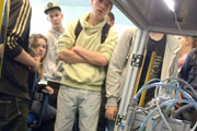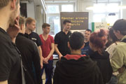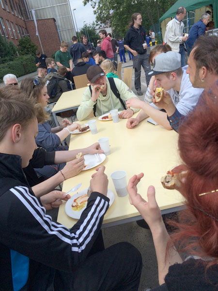 Im M+E-Info-Truck gab es dann noch Technik zum Anfassen, so dass wir unsere technischen Kenntnisse praktisch erproben konnten. Ausgestattet mit vielen Einblicken in den Alltag technischer Ausbildungsberufe und mit Informationsmaterial kamen wir zum Abschluss unseres Ausflugs: Freigetränke und frisch gegrillte Würstchen warteten auf uns!