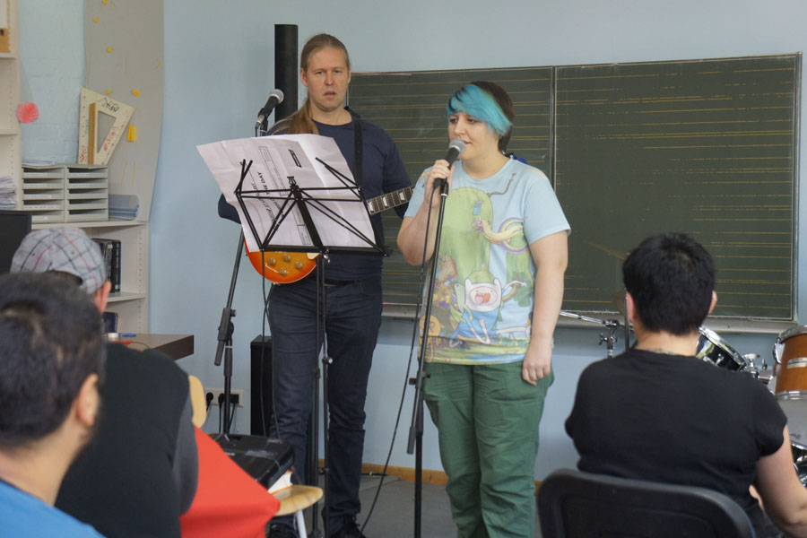 Völlig anders wurde unser Programm eingerahmt - von unserem Bandprojekt Völlig anders. Sie spielten Hey brother und Boulevard of broken dreams. Nachmittags gab es auch noch eine kleine Jamsession an den Instrumenten, aber auch an den Mikros beim Singstar Contest.