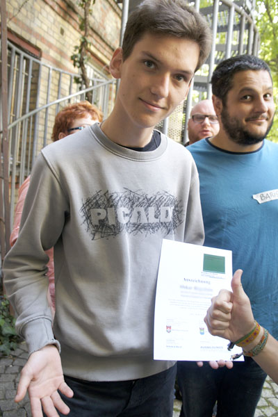 Neben dem offiziellen Teil mit Jennis Ansprache, der Überreichung der Zertifikate für den Auf- und Abbau der Ausbildungsoffensive Pankow durch deren Leiter Herrn Rohling und die Teilnahme am Erste Hilfe Kurs, erhielten die diesjährigen MSA-Absolventen ihre Zeugnisse.