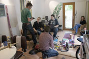 Bei der Drum-Station zeigte Nico, der Schlagzeuger unserer Band Völlig anders, wie man mit dem Schlagzeug umgeht, beantwortete geduldig Fragen und rundete sein Programm mit informativen Arbeitsblättern ab.