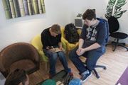 Die Songtext-Station ermöglichte es uns, uns selbst zu entfalten, indem wir uns erst für ein Thema entschieden, dann einen Text verfassten und anschließend nach einer passenden Melodie suchten. Auch hier haben sich einige Talente offenbart, was den Umgang mit Wörtern und Reimen betrifft.