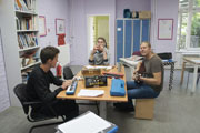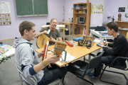 In der Rhythmus-Gruppe hatten wir die Möglichkeit, uns Akkorde an der Gitarre zeigen zu lassen, um dann gemeinsam zu musizieren.