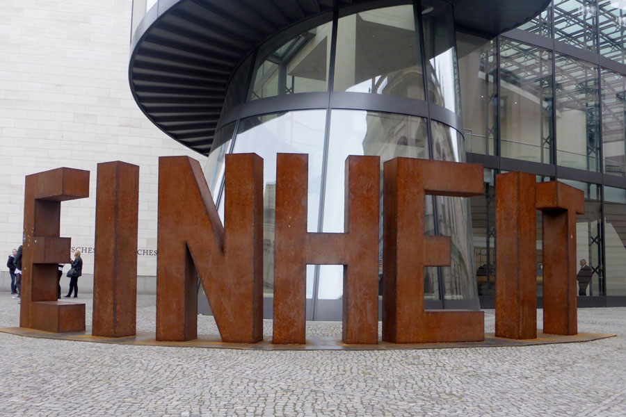 Einen Tag nach dem Gedenktag zum Fall der Berliner Mauer und der Öffnung der innerdeutschen Grenzen besuchten wir am Dienstag die Sonderausstellung Alltag Einheit im Deutschen Historischen Museum. Ein viertel Jahrhundert nach der politisch und rechtlich vollzogenen Einheit der beiden deutschen Staaten galt es Rückschau zu halten auf diese Zeit.