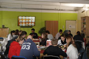 Den Auftakt gestaltete die Projektleitung durch eine musikalisch untermalte Weihnachtsgeschichte, welche uns in ihren Bann zog und zum Nachdenken anregte. Das gemeinsame Singen von Weihnachtsliedern zu Klavier- und später auch Gitarrenbegleitung sorgte für musikalische Abwechslung im weiteren Verlauf des Programmes. Ein lebendig-kreativer Halbjahresrückblick mit Fotos und Humor, die Zeugnisvergabe und Ehrung unserer eBBR-Prüflinge sowie der Verleih von Projektengeln an Jugendliche für besondere Mitarbeit und Kompetenzen beschlossen den offiziellen Teil unserer Feier. Bei kulinarischen Genüssen am Buffet, Kickerspiel, Tischtennis zu Technosound sowie vielen Kontakten und Gesprächen ließen wir den Tag bereichert ausklingen.