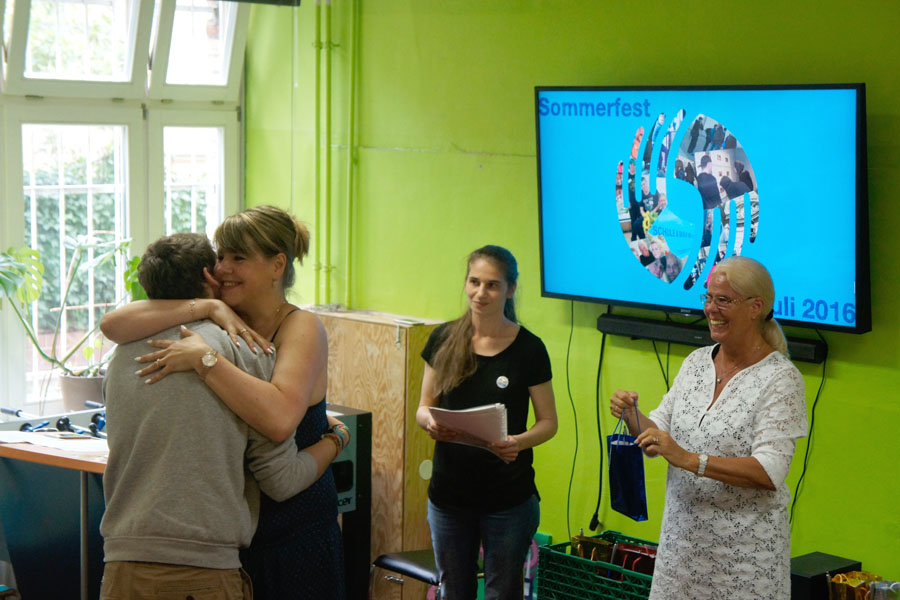 Bereits Wochen vorher kümmerten sich die kreativen Köpfe gemeinsam mit Titus um die liebevolle Gestaltung der Einladungen, die auch alsbald verschickt werden konnten. Neben der kreativen Vorbereitung fand natürlich auch die theoretische Planung frühzeitig statt und wurde zwei Tage vor dem Fest gemeinsam von allen TeilnehmerInnen und BildungsbegleiterInnen konkretisiert: Essen und Getränke wurden eingekauft, Kuchen gebacken und Speisen zubereitet. Nachdem die Tischtennisplatte für das Turnier in den kleinen Projektraum gebracht worden war, konnten die Tischinseln für das gemütliche Beisammensein im Projektraum aufgestellt und sommerlich-festlich dekoriert werden. Die abschließende Projektreinigung sorgte schließlich für den letzten Schliff.