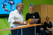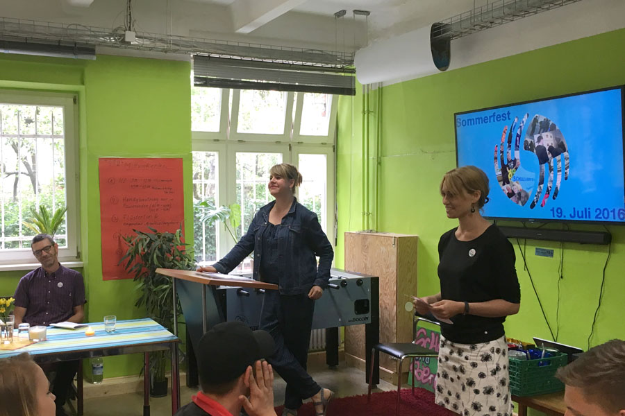 Am 19. Juli durften wir bei sommerlichen Temperaturen unsere Gäste begrüßen und gemeinsam den offiziellen Teil begehen. Bei der Moderation erhielt Jenni Unterstützung von Nicole, die in die Rolle der Co-Moderatorin schlüpfte, und Numcy, der die einzelnen Programmpunkte musikalisch am Klavier begleitete. Besonderen Dank möchten wir an dieser Stelle Herrn Rohling aussprechen, der den Teilnehmerinnen und Teilnehmern persönlich für die engagierte Hilfe beim Auf- bzw. Abbau des 9. Ausbildungstages der Ausbildungsoffensive Pankow dankte und die dazugehörigen Zertifikate überreichte.