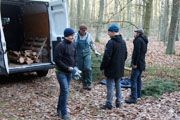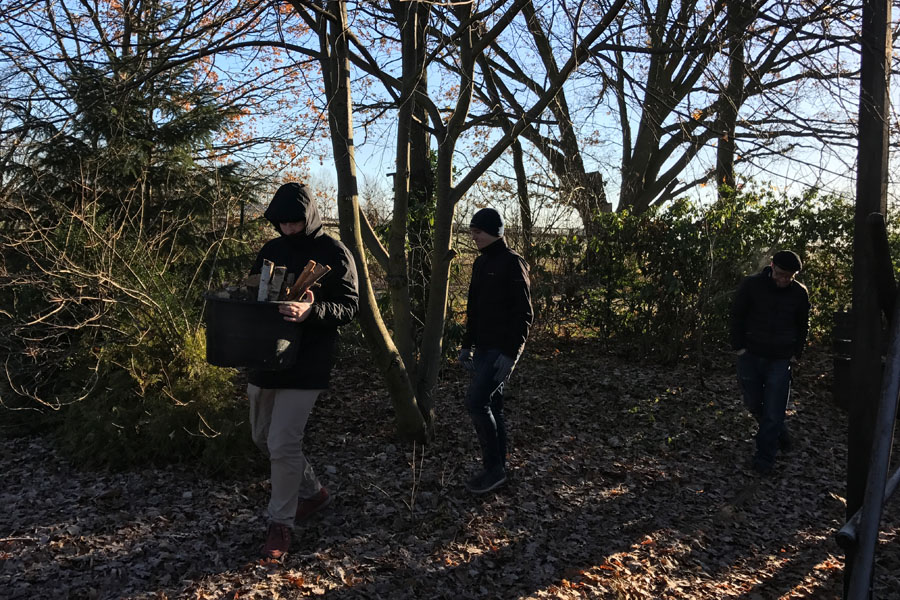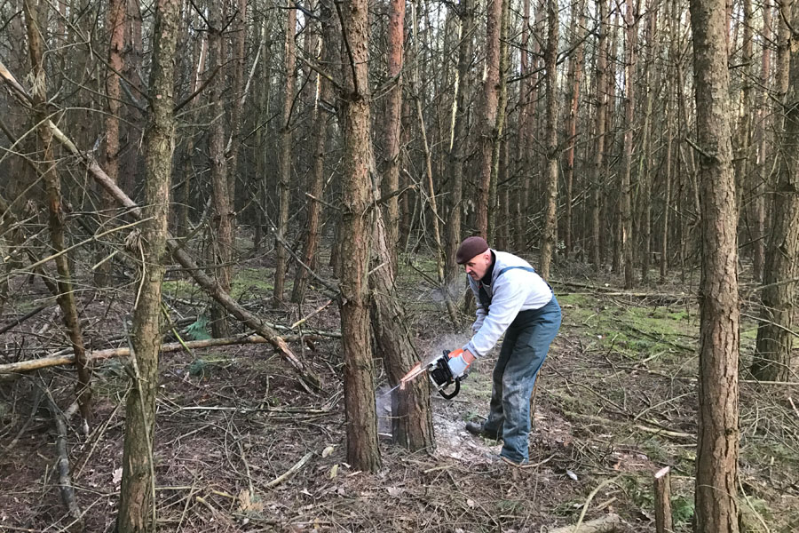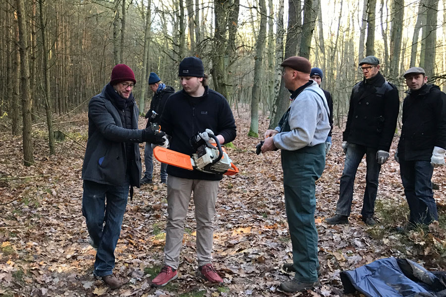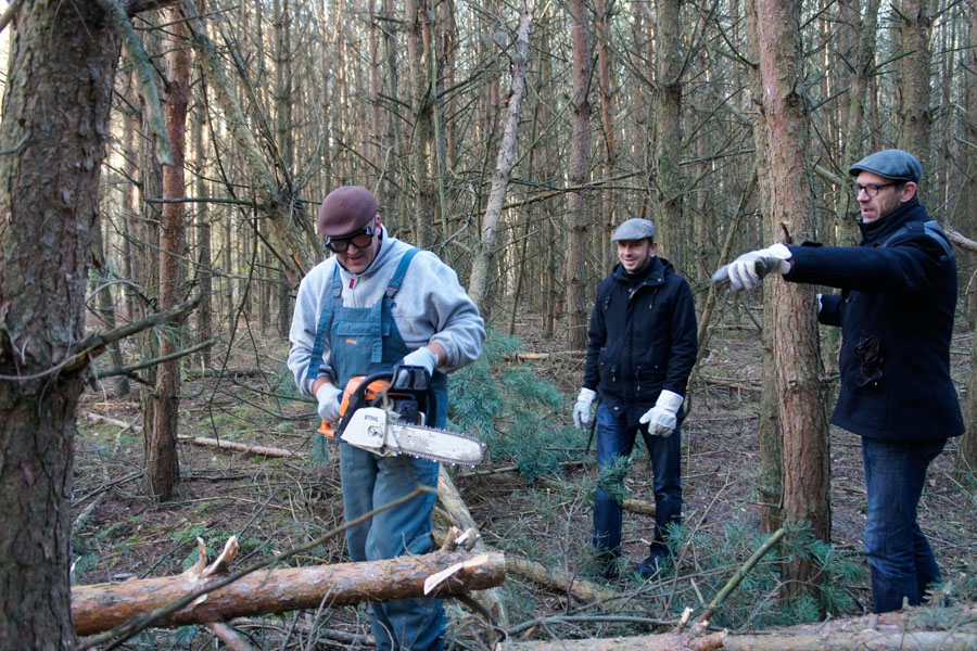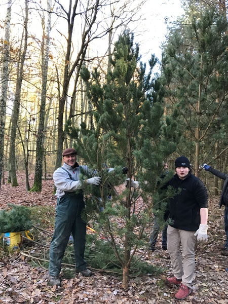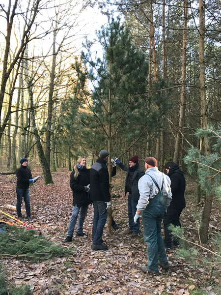 Um unseren Weihnachtsbaum zu schlagen, folgten wir am 29. November 2016 der Einladung des Gemeinnutzvereins Oberkrämer e.V. (GVO), vertreten durch Herrn RA Tengler (Vorstand), der zugleich auch Waldeigentümer ist. Er führte uns in ein Waldstück im Oberkrämer Forst. Nachdem wir unser „Basislager“ mit Tischen, Bänken und Proviant eingerichtet hatten, spazierten wir auf der Suche nach dem perfekten Baum durch den Wald.