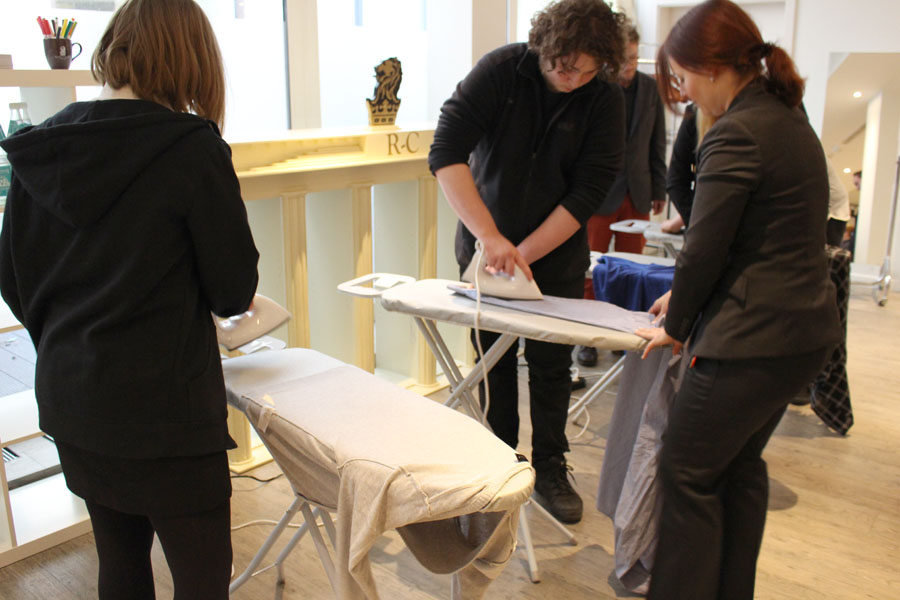 Schwerpunkt diesmal: Outfit und Grooming Coaching. Ein lebendiger Seminar-Parkours, während dem wir lernten, wie Mann/Frau möglichst zügig ein Hemd bzw. eine Bluse bügeln kann, wie ich korrekt einen Knopf annähe und - in Form eines Kreuzworträtsels inklusive Siegerprämie(!) - worauf es beim Waschen unterschiedlicher Stoffe ankommt. Schließlich ging es darum, wie du dich für ein Bewerbungsgespräch anziehen solltest, wie dein Styling nicht sein darf, worauf es ankommt, wenn du von dir Bewerbungsfotos machen lässt. Da insbesondere wir Jungs keine geeigneten Klamotten dabei hatten, stattete uns Simon mit Hemd, Krawatte - binden mussten wir selbst, nachdem Simon es uns beigebracht hatte - und Jackett aus. Zum Schluss fotografierten uns Katharina und Verena mit professioneller Beleuchtung und Regie und nicht zuletzt im neuen Top-Style - die perfekten Bewerbungsporträts!