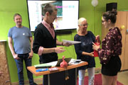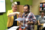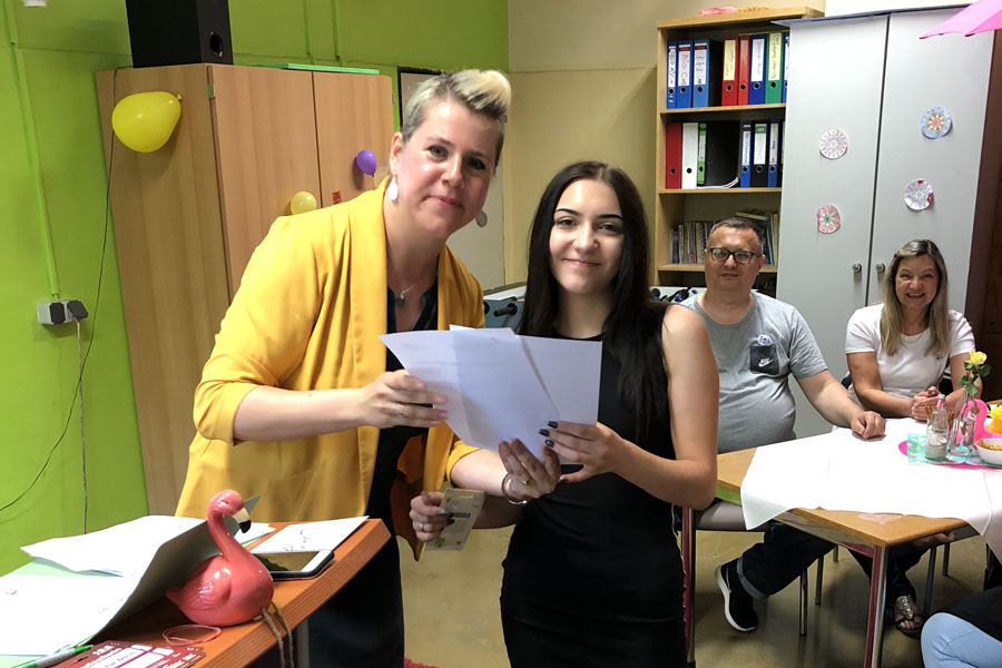 Zahlreiche Eltern, Betreuerinnen und Betreuer sowie Jugendamtsmitarbeiterinnen und -mitarbeiter waren unserer Einladung gefolgt und kamen ins Projekt, um an dem Fest teilzunehmen und die zu 100% erfolgreichen Absolventinnen und Absolventen zu ehren, die an diesem Tag neben wirklich sehenswerten Zeugnissen (die MSA-Prüfungen wurden mit einem Notendurchschnitt von 2,1 von bestanden, die BBR-Prüfungen mit einem Notendurchschnitt von 1,8) auch individuelle Abhlussgeschenke und Lebenswünsche sowie Zertifikate für den Auf- und Abbau des 11. Ausbildungstages der Ausbildungsoffensive Pankow bzw. die erfolgreiche Teilnahme am Medienworkshop überreicht bekamen.