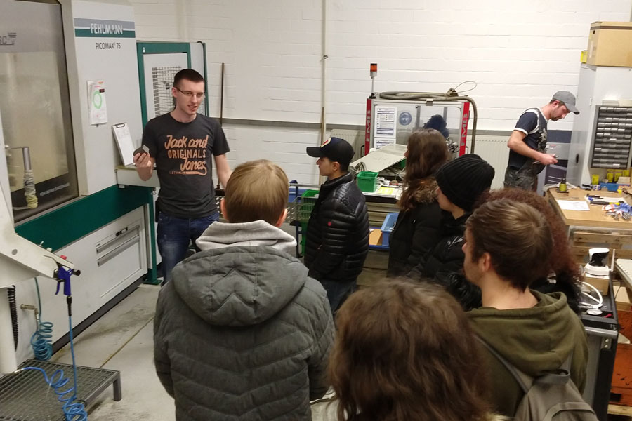 Es wurden uns Maschinen vorgestellt wie z.B. CNC-Langdrehautomaten, eine Späne-Aufbereitungsanlage, eine Teilereinigungsanlage, eine Laserbearbeitungsstation sowie Messinstrumente wie Videomessmikroskope, Profilprojektoren und Digitalmessmittel.