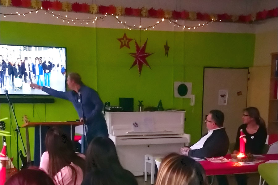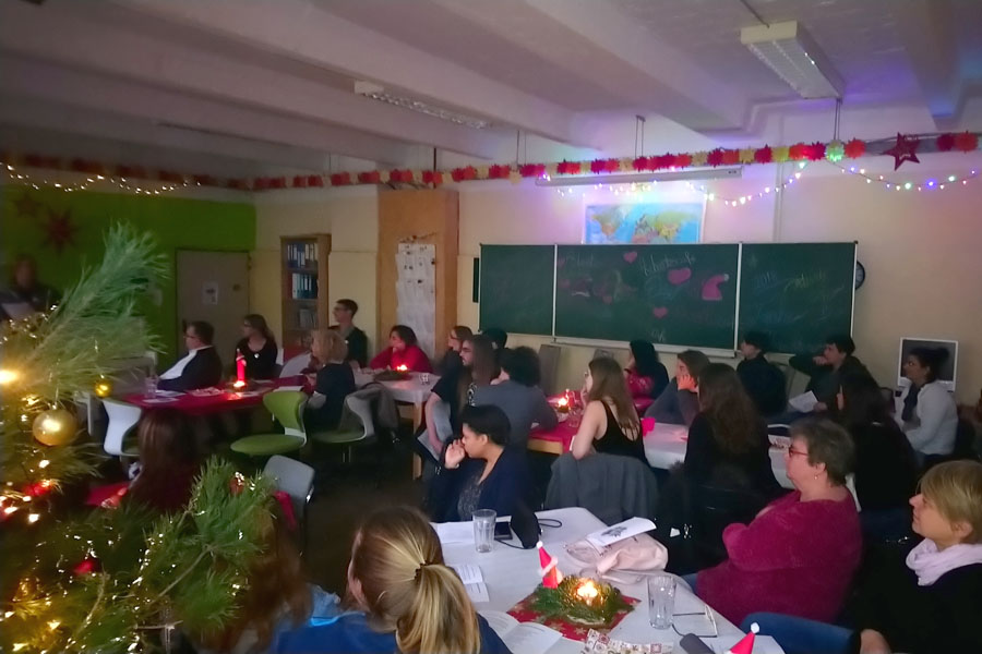 „Es war schön, das Buffet war sehr vielfältig und genüsslich. Die Stimmung war ausgelassen und es wurden schöne Weihnachtslieder gesungen. Zu Beginn wurde eine schöne Geschichte erzählt. Danach wurde die Projekt- und Prüfungsengel gekürt. Anschließend wurde das Buffet eröffnet.“