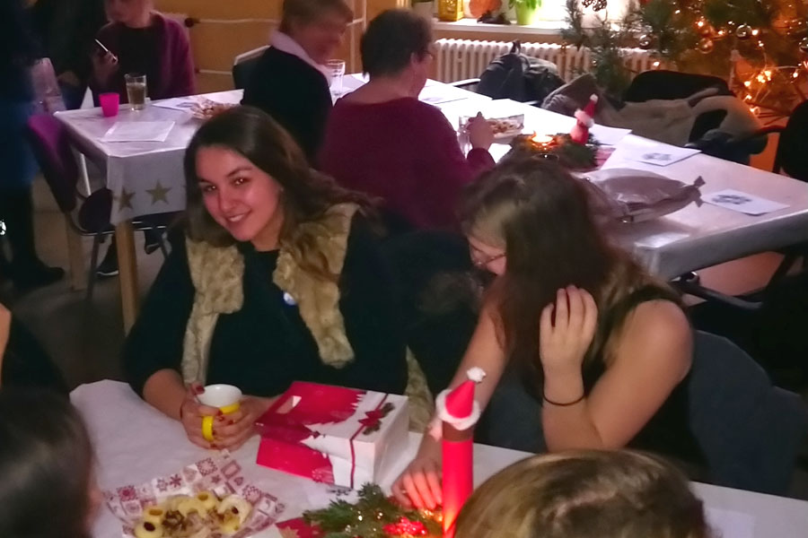 „Ich fand das Weihnachtscafé lustig, alle haben viel gelacht. Ich fand die Zeit gestern schön und es verflogen förmlich die 6 Stunden wie 5 Minuten. Ich fand das Singen schön, das Essen lecker und die Atmosphäre angenehm.“