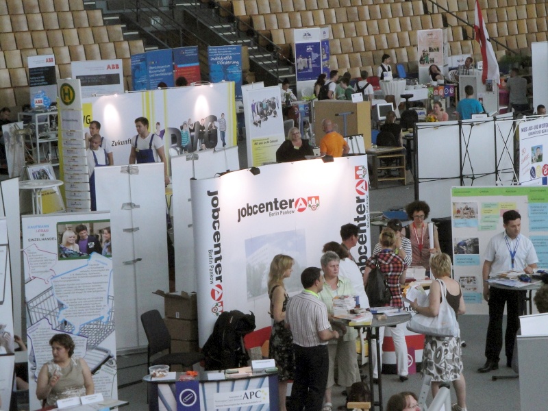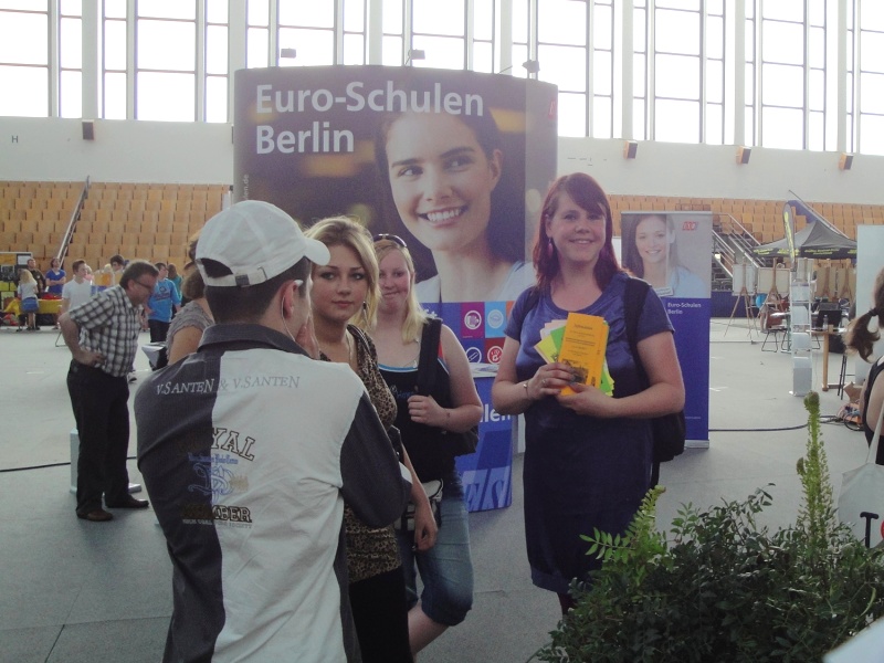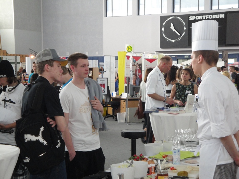 Unternehmen, Bildungsdienstleister, Beratungseinrichtungen und freie Träger informierten an über 60 Ständen über Berufsbilder, Ausbildungsberufe und Ausbildungsgänge. Insgesamt nahmen dieses Jahr etwa 1440 Pankower Schüler und Schülerinnen am Ausbildungstag Pankow teil. Das Ausprobieren und Testen an vielen Ständen hat besonders dazu beigetragen, dass bei den Jugendlichen für die Suche nach dem geeigneten Beruf und einem beruflichen Praktikum Interesse geweckt wurde. Einige unserer Jugendlichen besuchten zusätzlich eine der neun Fachforen zu bestimmten Berufsfeldern, die von Praktikern jeweils viermal am Tag vorgestellt wurden.