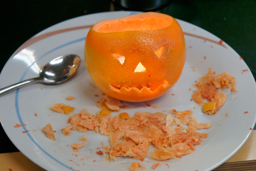Am 2. Oktober bündelten wir all unsere kreative Energie und zauberten aus alten Papprollen Kürbisse, gestalteten Totenkopf-Girlanden und verwandelten Orangen in duftende Fratzen-Teelichter. Jetzt sind wir dekorativ gut ausgestattet: die Halloweenparty kann kommen!