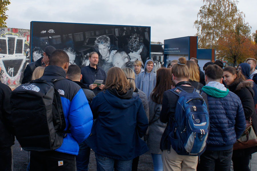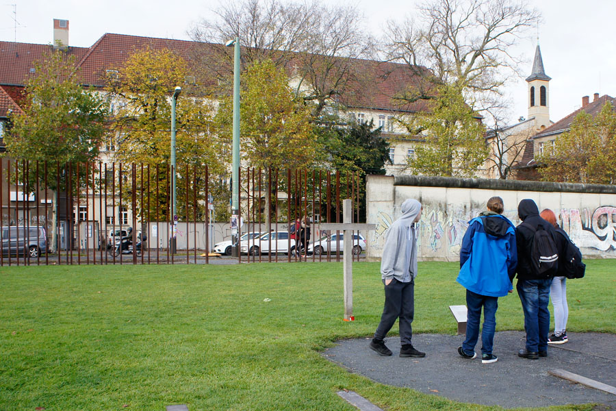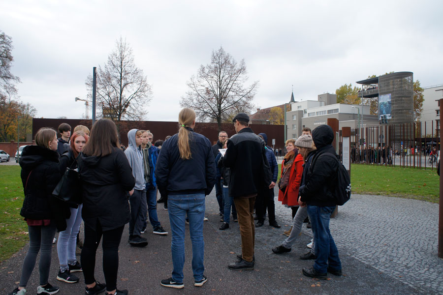 An einem Donnerstag Anfang November gingen wir über ein Stück des Berliner Mauerweges. Der 9. November war unser Anlass dafür. Wir sahen gleich am Anfang die unterirdische Mauer, also wie Berlin auch in den U-Bahnhöfen bis 1989 geteilt war und damit auch die Menschen. Darüber befand sich die richtige Mauer und auch ein Wachturm der DDR-Grenzsoldaten war an der Gedenkstätte Berliner Mauer noch zu sehen. Dort starben auch nicht wenige Menschen auf dem Todesstreifen, die Ost-Berlin oder die DDR aus Unzufriedenheit für immer verlassen wollten. Dieser Todesstreifen befand sich vor der eigentlichen Berliner Mauer und war an der Gedenkstätte auch zu sehen. Manche aus unserer Gruppe bewegten die Geschichten von den einzelnen DDR-Flüchtlingen ziemlich stark. Ein irgendwie nachdenklicher Vormittag.