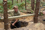 Zur Vorbereitung des kommenden Waldtages mit allen Teilnehmer*innen am nächsten Mittwoch waren wir mit vier Teilnehmer*innen heute (18. August) im Wald und haben zwei Donnerbalken gebaut. Zuerst mussten die Gerüste gebaut werden, dazu wurden große Baumstämme mit Axt und Säge bearbeitet. Im Anschluss mussten wir eine ca. einen Meter tiefe Grube ausheben. Am Ende wurden kleinere Balken als Sichtschutz aufgestapelt. Die Teilnehmer*innen hatten trotz der harten Arbeit ihren Spaß.