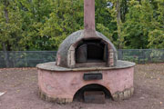 Wir sind dann zu einem Platz gelaufen, auf dem große Steine schief angefertigt worden sind. Auch der Boden war schief und wir taumelten durch die Reihen. Diese Schieflage sollte Unsicherheit aber auch Hoffnung für jüdische Flüchtlinge suggerieren. Etwas weiter auf dem großen Platz, fanden einen alten Steinofen, in dem wir zukünftig zum Pizzabacken vorbeischauen wollen.