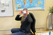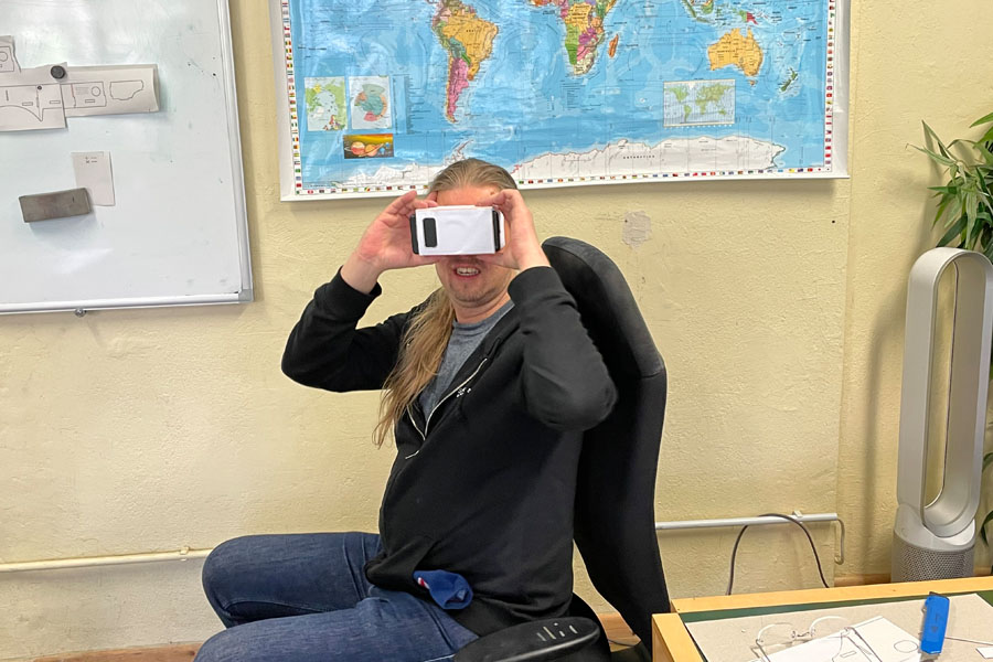 Nachdem die ersten Brillen fertig waren, konnte man einige Personen im Projektraum beobachten, die mit ihren Werken aus Pappe und Handy vor den Augen scheinbar ihre reale Umwelt vergessen haben und staunend und kommentierend virtuelle Umgebungen erkundeten: