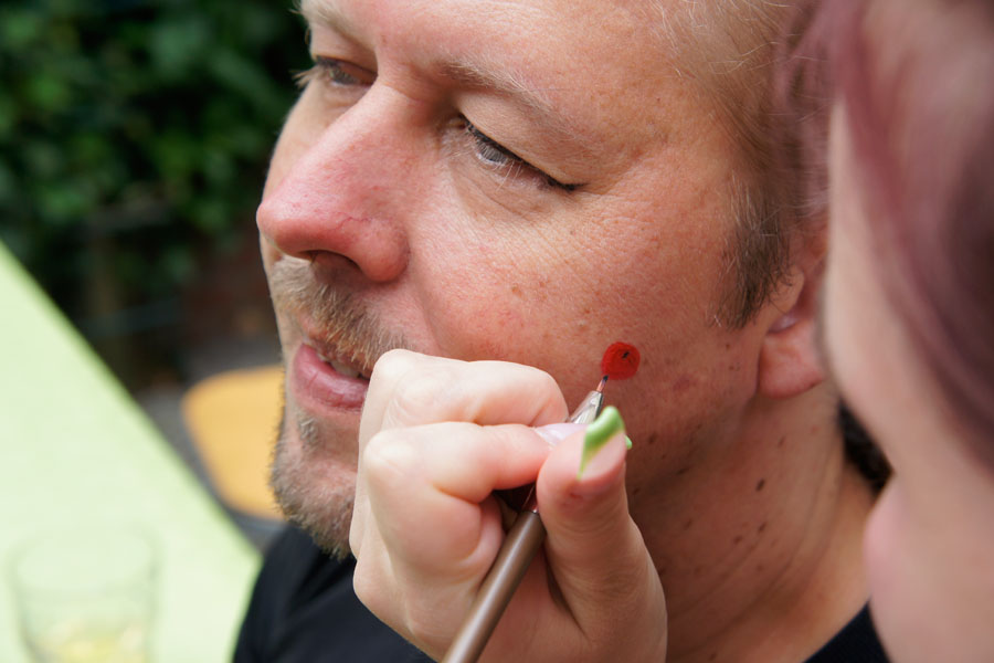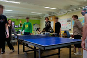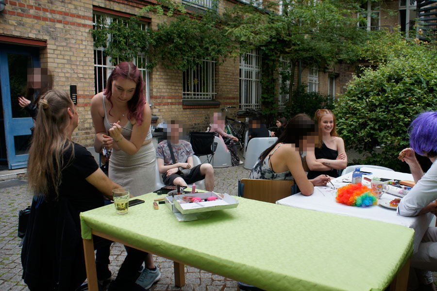 Andere Teilnehmer oder auch Bildungsbegleiter hatten eigene Stände, wo man sich schminken lassen konnte und bei einem anderen sich verkleiden und dann fotografieren lassen konnte. Es wurde sehr gut gegessen und es gab viele kleinere und größere Gespräche untereinander. Später hat sich auch eine große Gruppe zusammengefunden, um zum Abschluss noch eine chaotische Runde Werwolf zu spielen, während eine andere Gruppe im Erdgeschoss Tischtennis spielte.