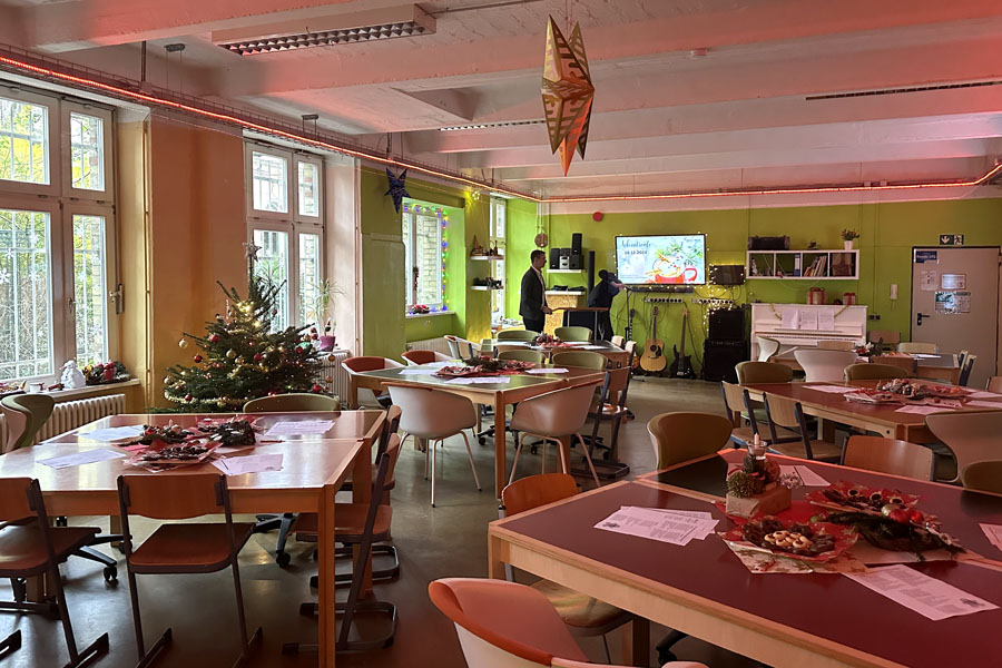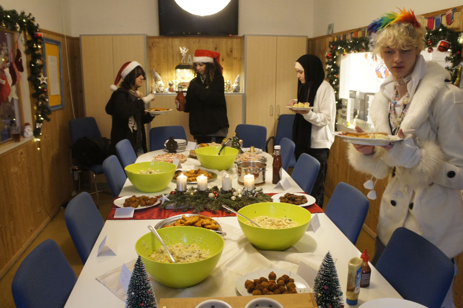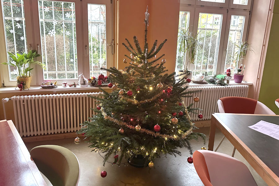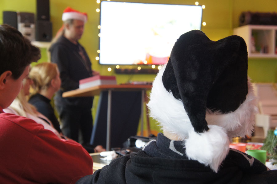 An dem Tag der Weihnachtsfeier sind wir alle zu unseren Zeiten gekommen, haben die letzten Sachen vorbereitet und dann ging's um 10 Uhr los im Projektraum.