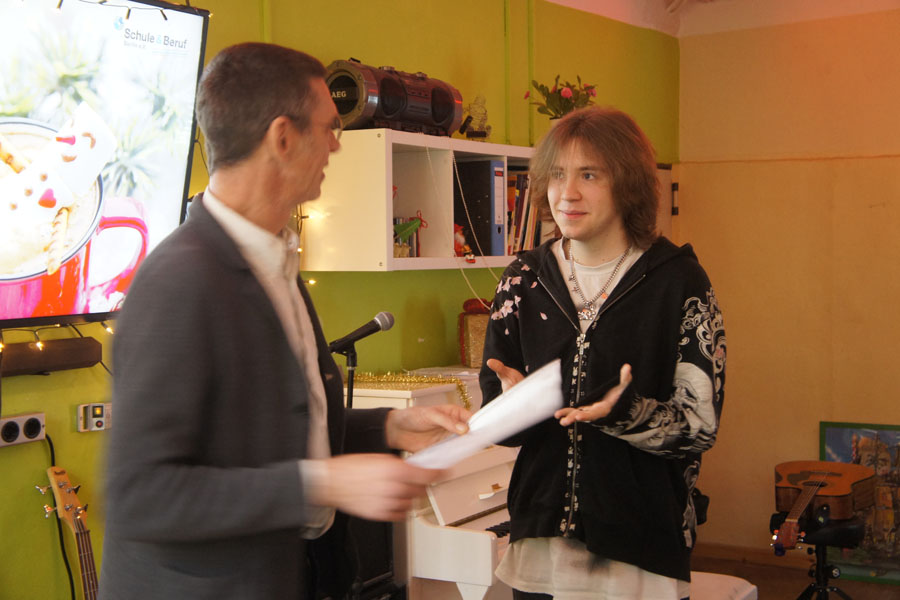 Wir kamen alle zusammen und haben gesungen, Wichtelgeschenke verteilt und die Zeugnisse wurden vergeben. Natürlich gab es auch den Halbjahresrückblick.