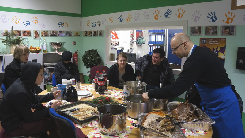 Höhepunkte waren neben der Zeugnisausgabe das gemeinsame Festessen mit Pute, Ente, Rotkohl und Klößen, die Kaffeetafel mit allerlei Selbstgebackenem, sowie Karaoke und das gemeinsame Tischtennisspielen.
