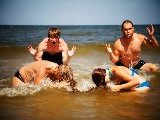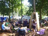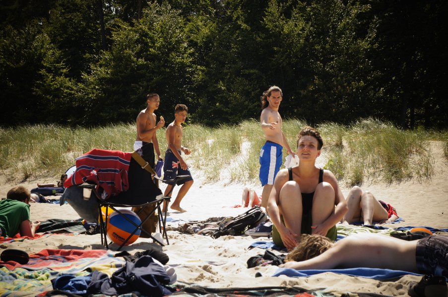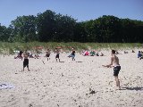 Unsere Projektfahrt führte uns dieses Jahr vom 17. bis 19.7. auf die schöne Insel Usedom. Genauer, auf den strandnahen und unendlich erscheinenden Campingplatz Ückeritz (einer der größten Europas). Bei richtig schönem Wetter begann unser Ausflug am Morgen des 17.7. vom Bhf. Gesundbrunnen, wo unsere aus insgesamt 25 Personen von Schule & Beruf bestehende Gruppe in den Zug Richtung Ostsee stieg. Wenige Stunden später konnten wir - dank der Bahn - schon den Sand unter unseren Füßen knirschen und die Wellen rauschen hören. Die 15 Zelte waren schnell aufgebaut und es begann eine tolle Zeit mit viel Sonne, Meer, Sport, Musik und gemeinschaftlichem Grillen und Kochen.